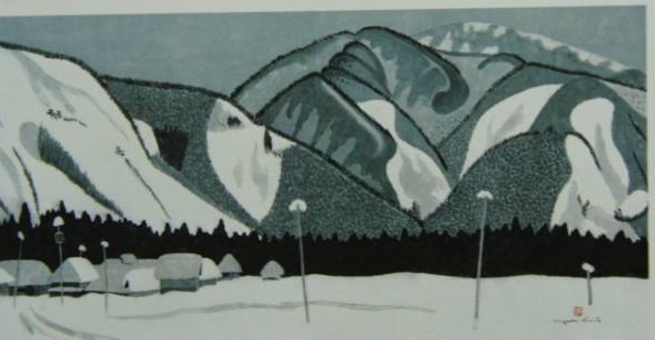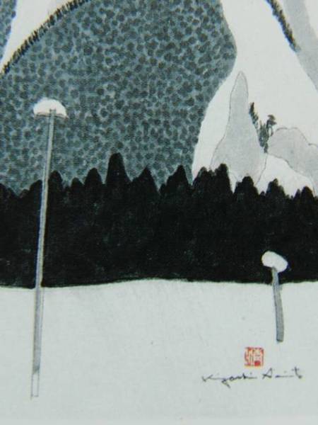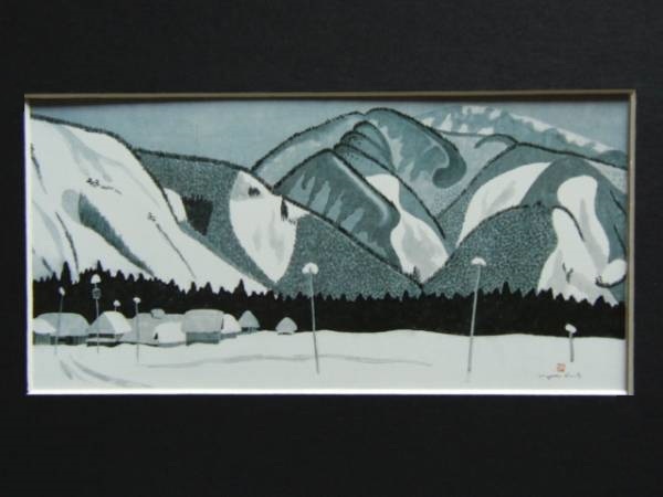 斎藤清、会津の冬、若松上三寄、希少画集画、新品額装付、mai