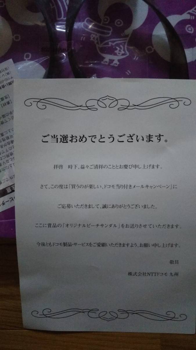 レア? / (紫色) ドコモ オリジナルビーチサンダル / 7月当り付きメール / 183日間ぶっとーし。4/1~9/30 / Do Co Mo
