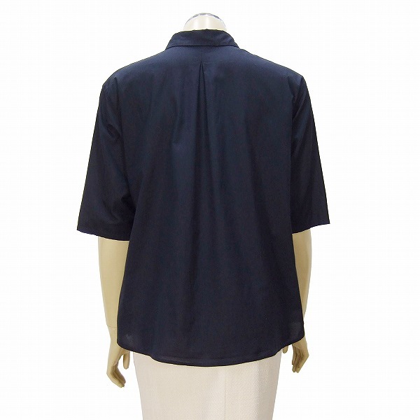 C)新品同様*プランテーション Plantation エイネット★濃紺(綿100%×シャーリング(極上ストライプ★5分袖シャツ 衿付ジャケット★Mサイズ
