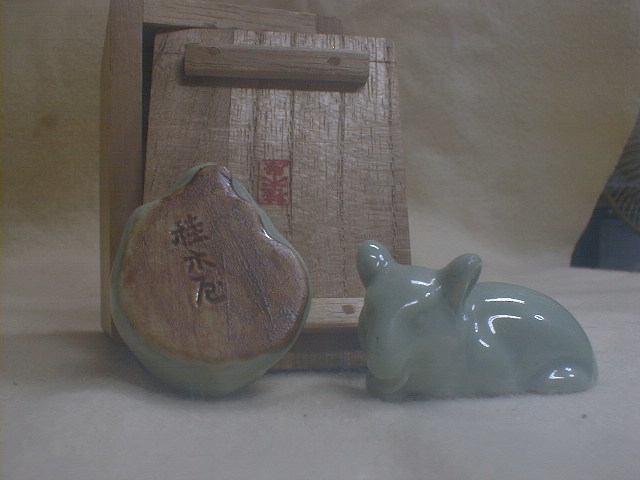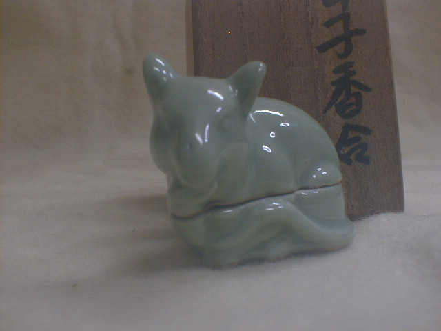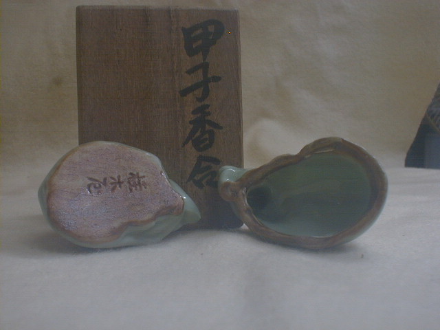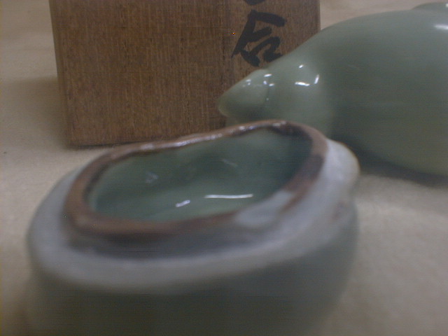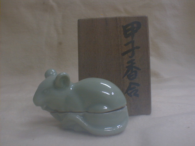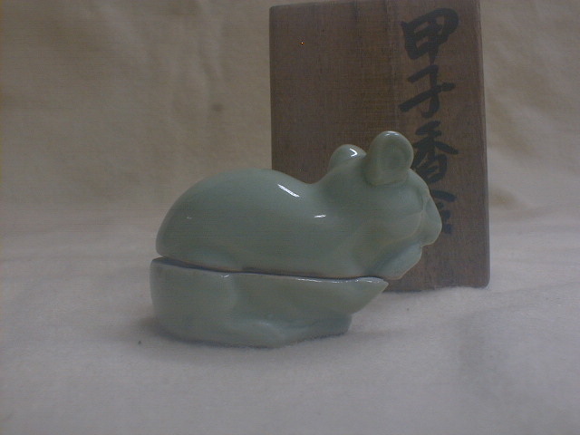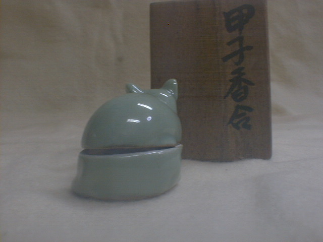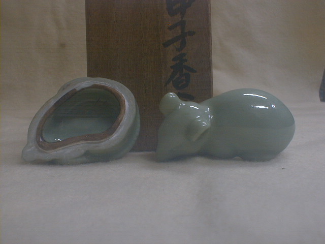 桂木庵 古い青磁 ねずみ 4x5.5x3.5cm 36g 甲子香合 茶道具