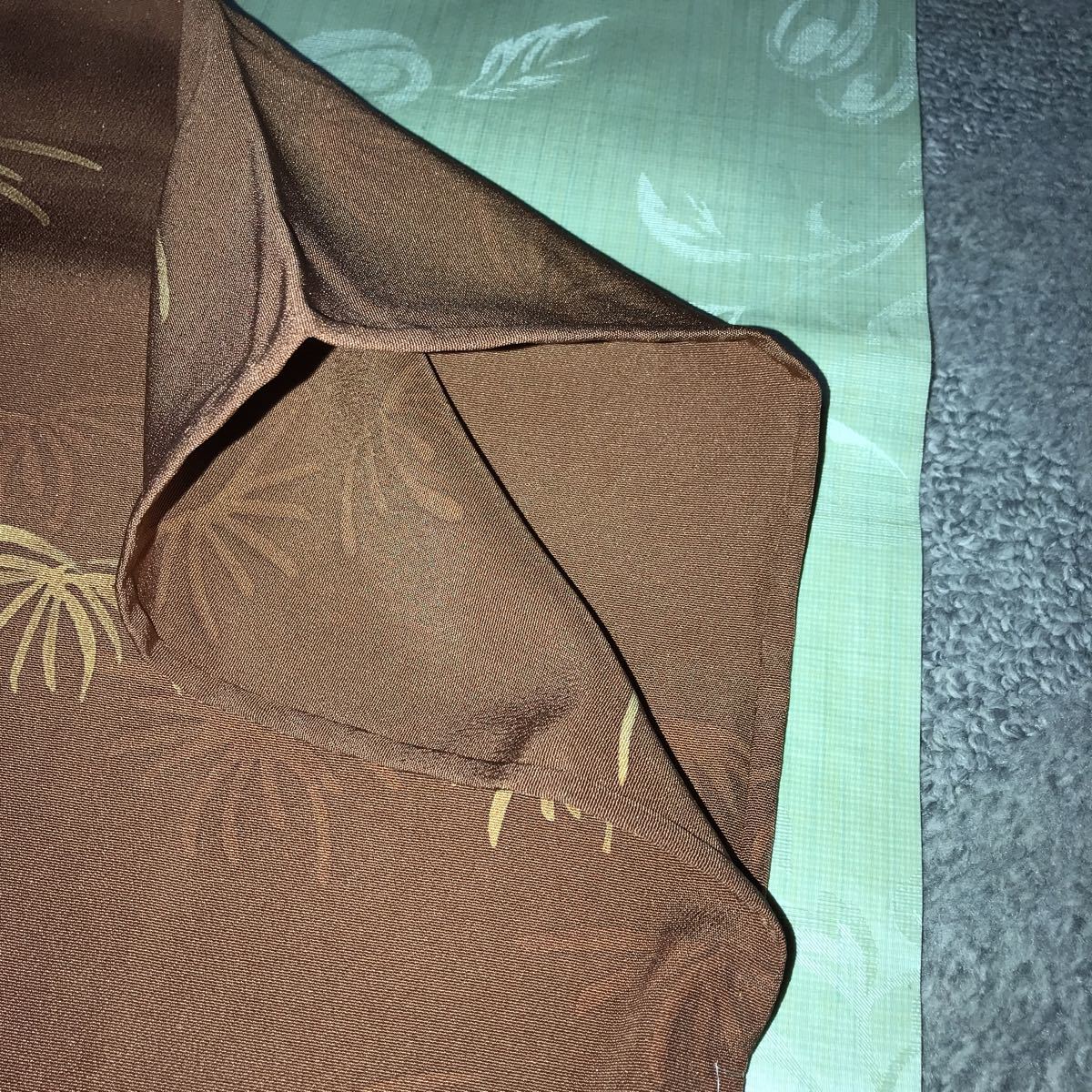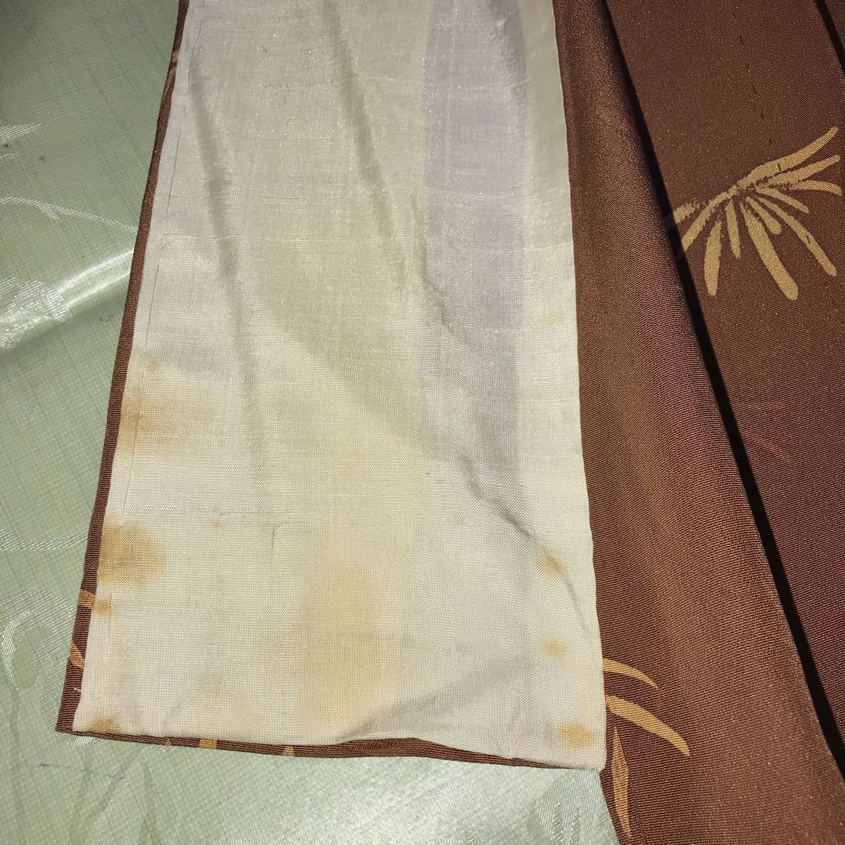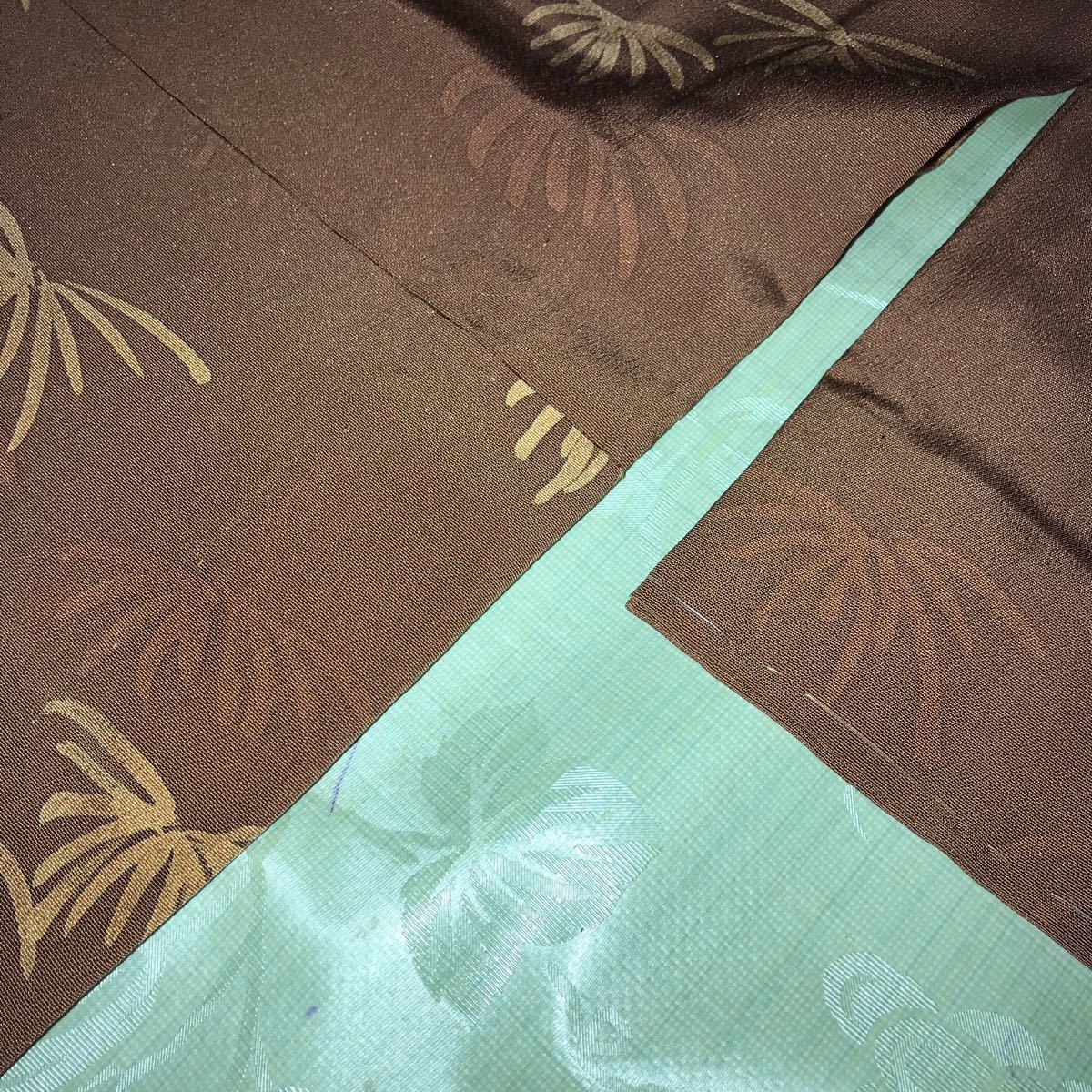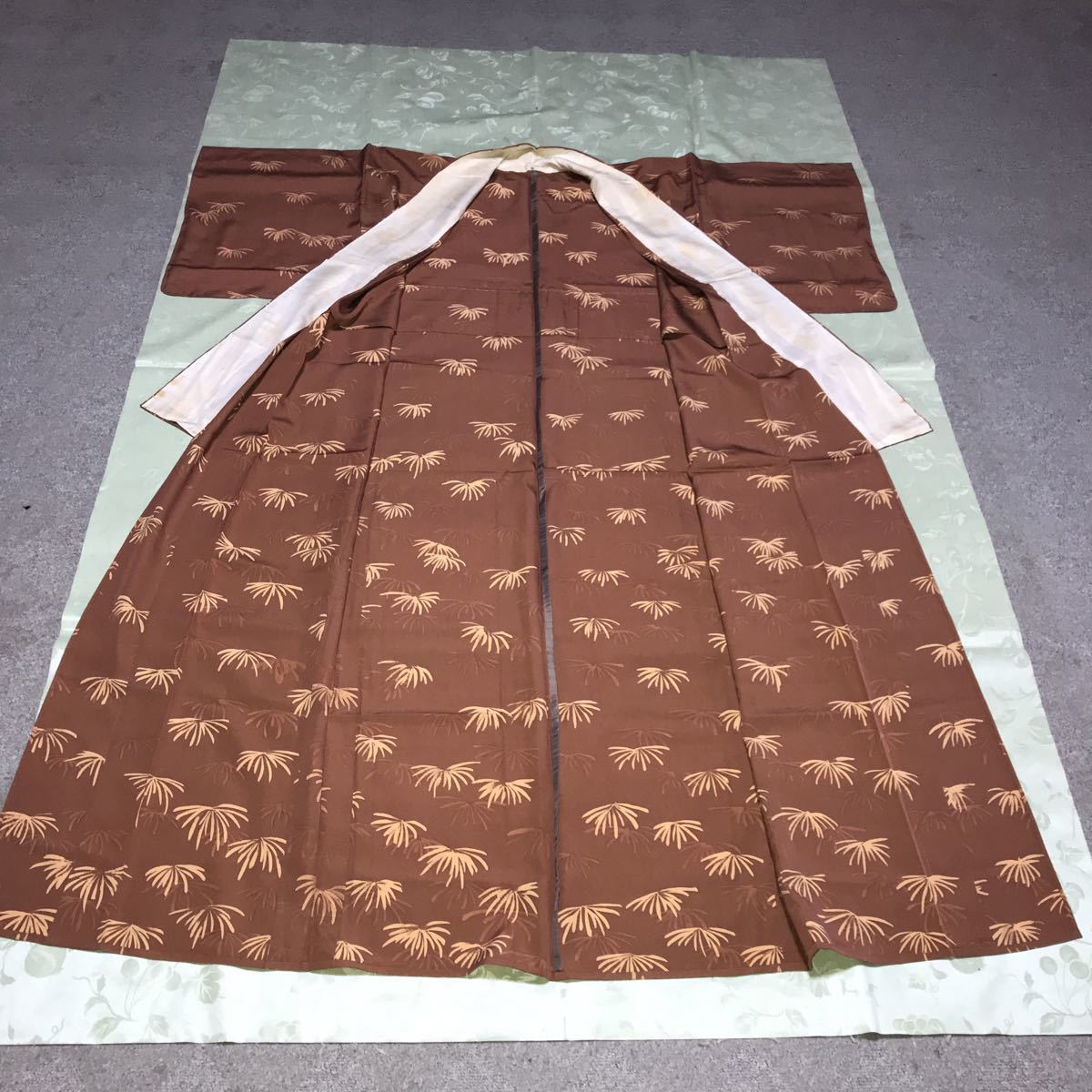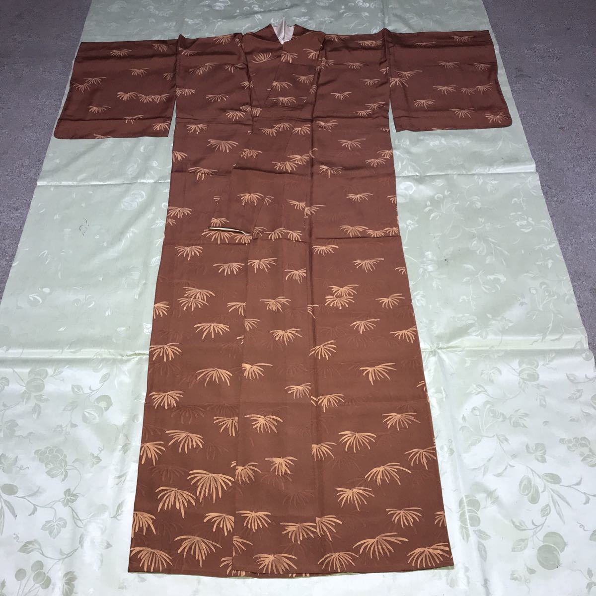 ■女性用 単衣 着物 ポリエステル 茶色地黄土色 花柄?■