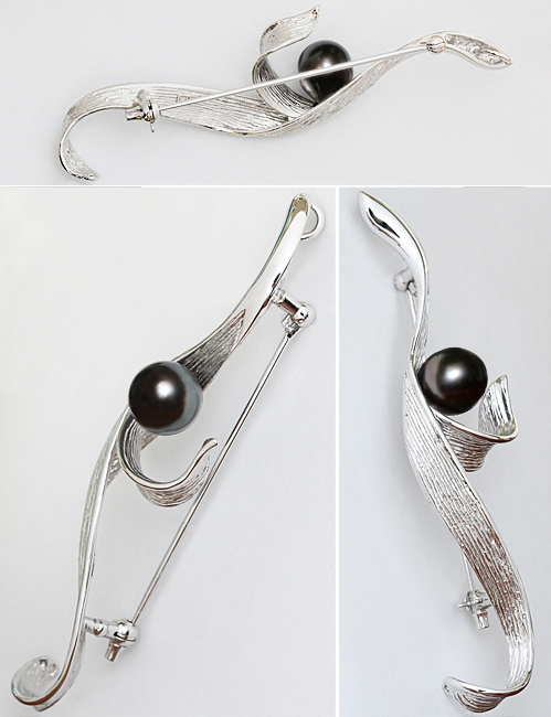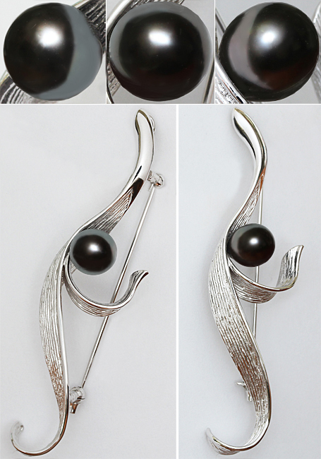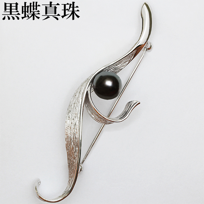 上品 エレガント☆黒蝶真珠 南洋真珠 パール 約9ミリ 9mm シルバー ピン ブローチ フォーマル♪送料込 | ||