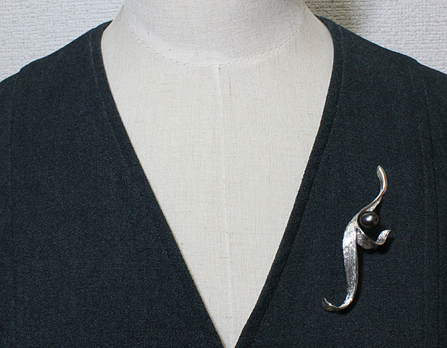 ☆黒蝶真珠(南洋真珠)をセットしたエレガントなブローチです♪ ☆主に沖縄やタヒチなどで養殖されている黒蝶真珠(南洋真珠)は、上質なテリと深みのある神秘的なカラーで人気の高いお品となります♪ ☆こちらの黒蝶真珠はツルリとした柔らかなテリが綺麗♪ 胸元を品良く華麗に彩ります♪ ☆黒蝶真珠の形状はセミ・ラウンド系となり、少し歪(いびつ)さを残した楕円形となります♪ 本物の真珠ならではの趣をお楽しみ頂けます♪ ☆真珠の裏側の根元部分に多少の「肌荒れ」が確認できますが、その他は目立つ「肌荒れ」のない綺麗なコンディションです♪ ☆全体のデザインは曲線をモチーフにした洗練された雰囲気となり、フォーマルなお洋服にも映える一品です♪ ☆裏側に素材を示す「SILVER」の刻印がございます♪ ☆写真で商品が黒く写っている部分は、カメラの写り込みです♪ |