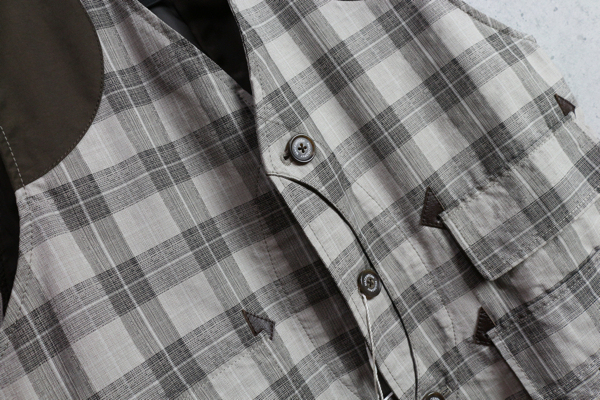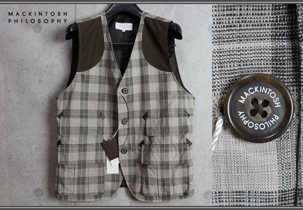 新品マッキントッシュ フィロソフィー 撥水シリコンコーティング チェック ベスト40/L茶灰 定価3.4万/MACKINTOSH PHILOSOPHY/ジレ