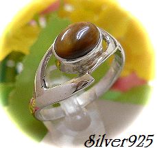 シルバー925銀の天然石タイガーアイ付リング/8号.9号.11号.12号.15号より