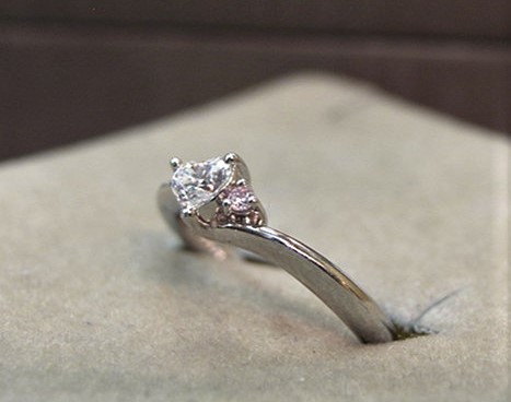 【総重量=3.7g・最大巾=5.1㎜巾・最小巾=1.7㎜・最大厚=4.0㎜巾・ハートダイヤ0.208cの大きさ=約3.99×3.56㎜・天然ピンク・ダイヤモンド:1石入り・現状指サイズ=【8号】サイズ変更可能範囲=5号~13号まで、実費でお受けします。ご相談下さい。】