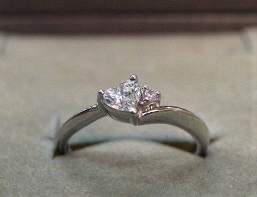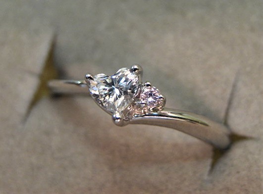 ♪【ご婚約指輪・エンゲージリング】に!また、オシャレな【ファッション・リング】に、どうぞ!!人気ジュエリー・ブランド【4℃】製、高品位【Pt950】枠の中央に、綺麗な輝きの上質【天然ダイヤモンド:ハートカット】【0.208c・Fカラー・VS2クラリティ】を留め、その隣に、希少・高価・貴重な【天然ピンク・ダイヤモンド:1石】が留められて、主石を引き立てています。ハート型のダイヤは、小さく・可愛いく、センスの良いデザイン・造りは、希少で個性的です。人とは、一味違う、リングをプレゼントに最適!ご自分へのご褒美にもどうぞ!