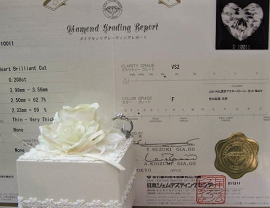 婚約!【4℃】【0.208c・F・VS2・ハート】Pt950・8号・3.7g・消費税・送料込み
