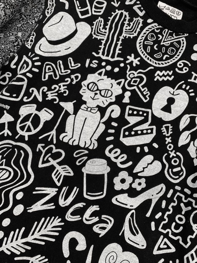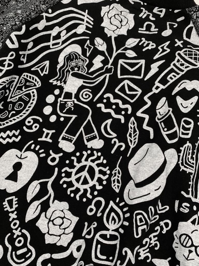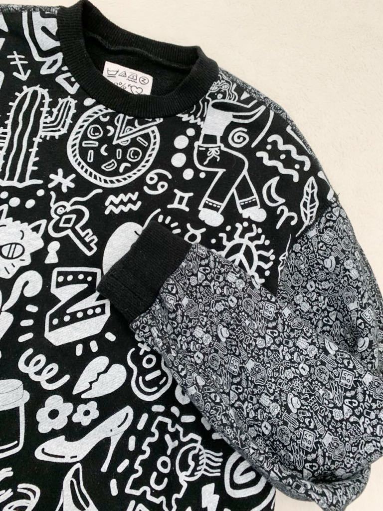 ・chocomoo氏が書き下ろしたインパクトのある総柄のデザインが特徴的なスウェットトップスになります♪