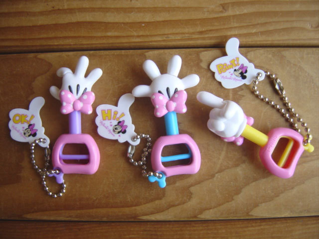 1.ハイ!(ミッキー) 2.ハイ!(ミニー) 3.ポイント!(ミッキー) 4.ポイント!(ミニー) 5.オッケー!(ミッキー) 6.オッケー!(ミニー) ◇マジックハンドでいたずらしちゃおう! レバーを引くと指が動くよ! |