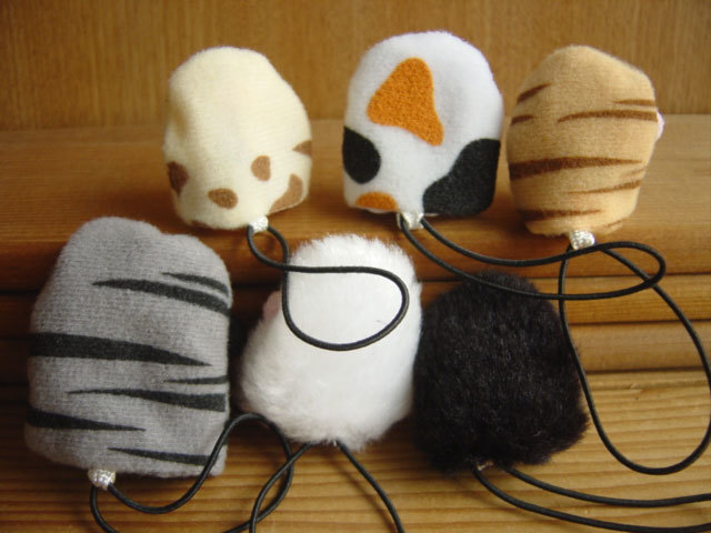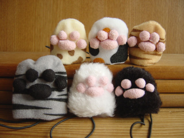1.ふさふさシロ 2.ふさふさクロ 3.ブチ 4.キジトラ 5.ミケ 6.BIGアメショ ◇やっぱり猫が好き!本物の猫の手みたい! 指にはめて肉きゅうでふきふき~! |