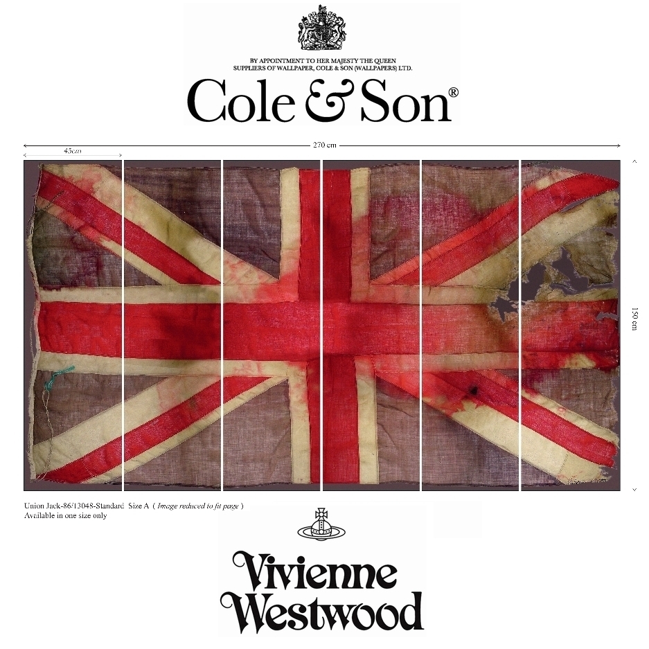 イギリスの壁紙メーカー、【Cole & Son (コール・アンド・サン)】が、 ヴィヴィアン・ウエストウッドと、コラボした、壁紙シリーズの中の一つ、 【ユニオンジャック】です。 一反になっていて、6つに分割されています。 張り合わせることにより、ユニオンジャックが完成します。 6つにカッティングする際、柄と柄の間には、長めの白い余白があり、 そこに切り取り線があるので、簡単にカットすることが出来ます。 壁紙と言うよりも、巨大ポスターとイメージして頂いた方がいい感じです。 もちろん、壁に貼ることも可能ですが、 6枚のボードに貼り、柄と柄を合わせて、壁に掛けるのも、良い方法かと思います。 日本国内で、Cole&Son のヴィヴィアンの壁紙を入手するのは、非常に困難ですし、 現在、この壁紙は、生産終了してしまったので、イギリス国内でも、既に、プレミアム価格化しています。 他にも、巨大ブドワール等、 ヴィヴィアンはレア物のみ出品していますので、 良かったらご覧下さい。 ヴィヴィアン・ウエストウッド 出品一覧 | |
