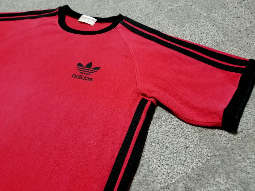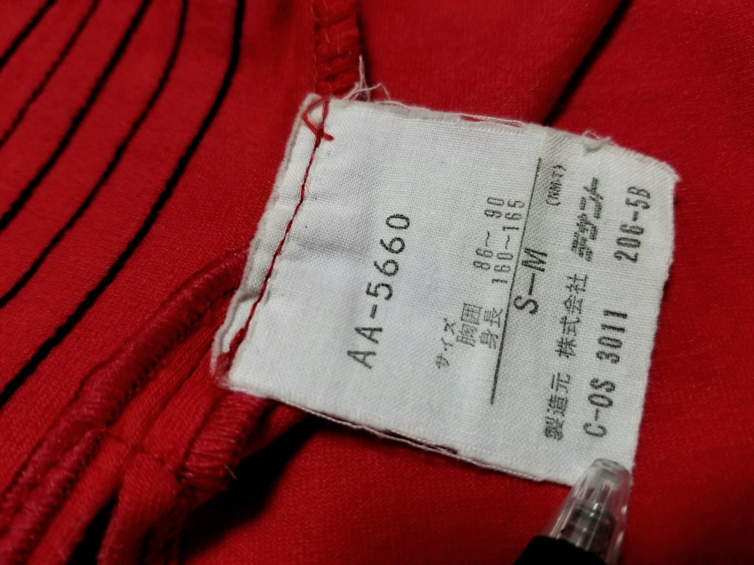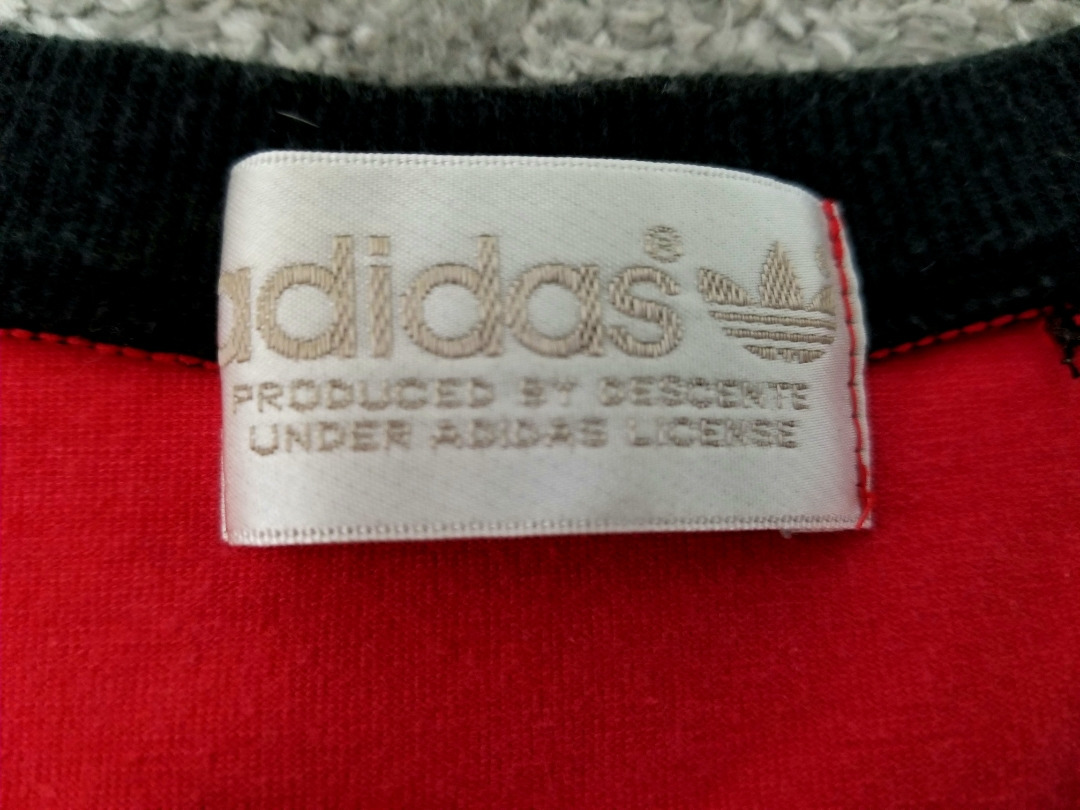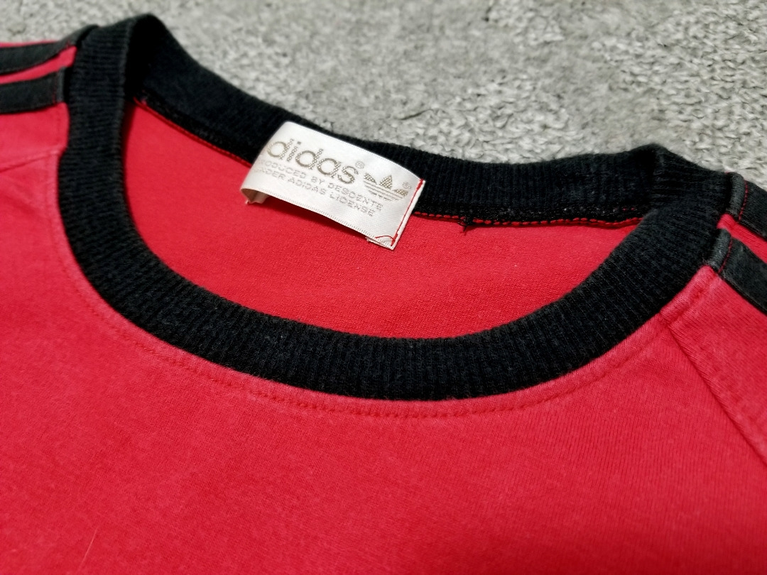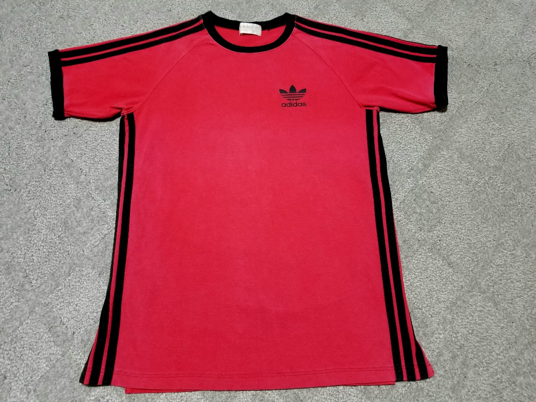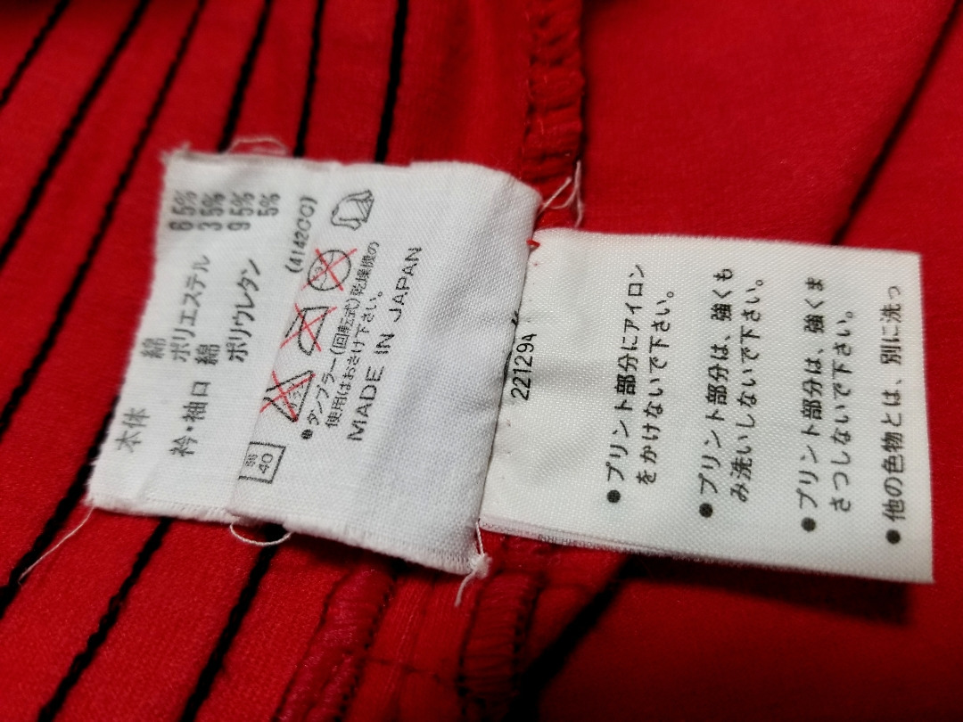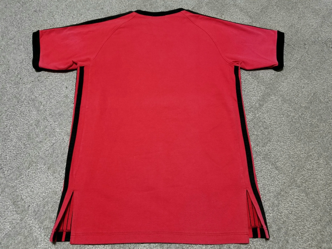 探すと意外と見つからない黒赤の切り替えに左胸にトレフォイルのプリントが施された一着で、サイズはS-Mです。