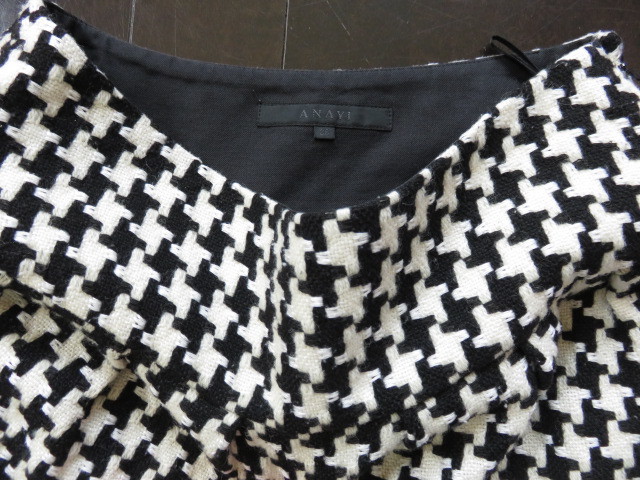 【ANAYI】アナイの高級ウールスカート、お色は、黒×白の千鳥格子です。