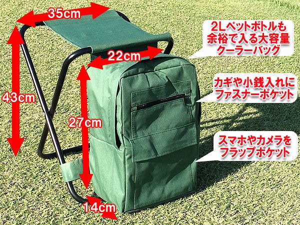 アウトドアチェアとクーラーバッグとデイパックが一つになった 12Lクーラーバッグチェア ピクニックお弁当入れてでかけよう
