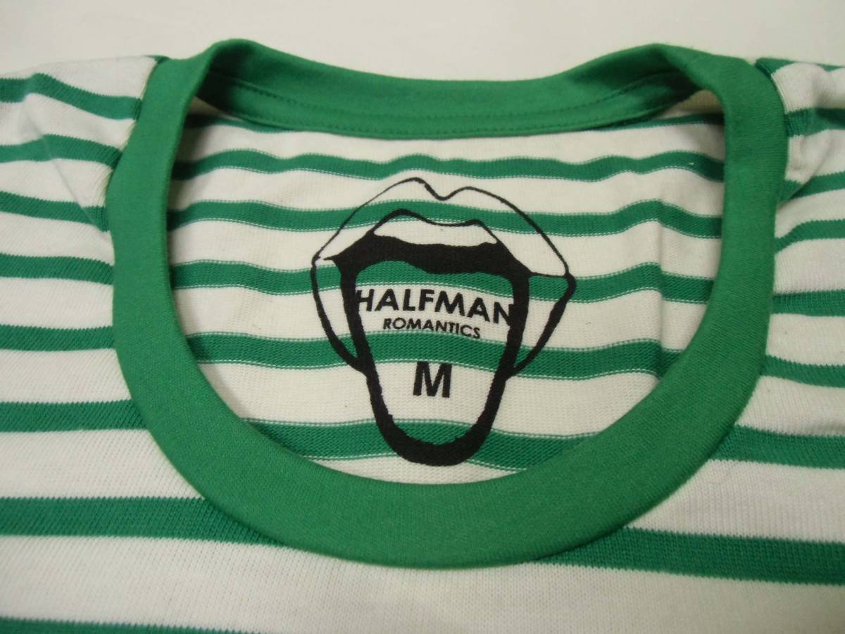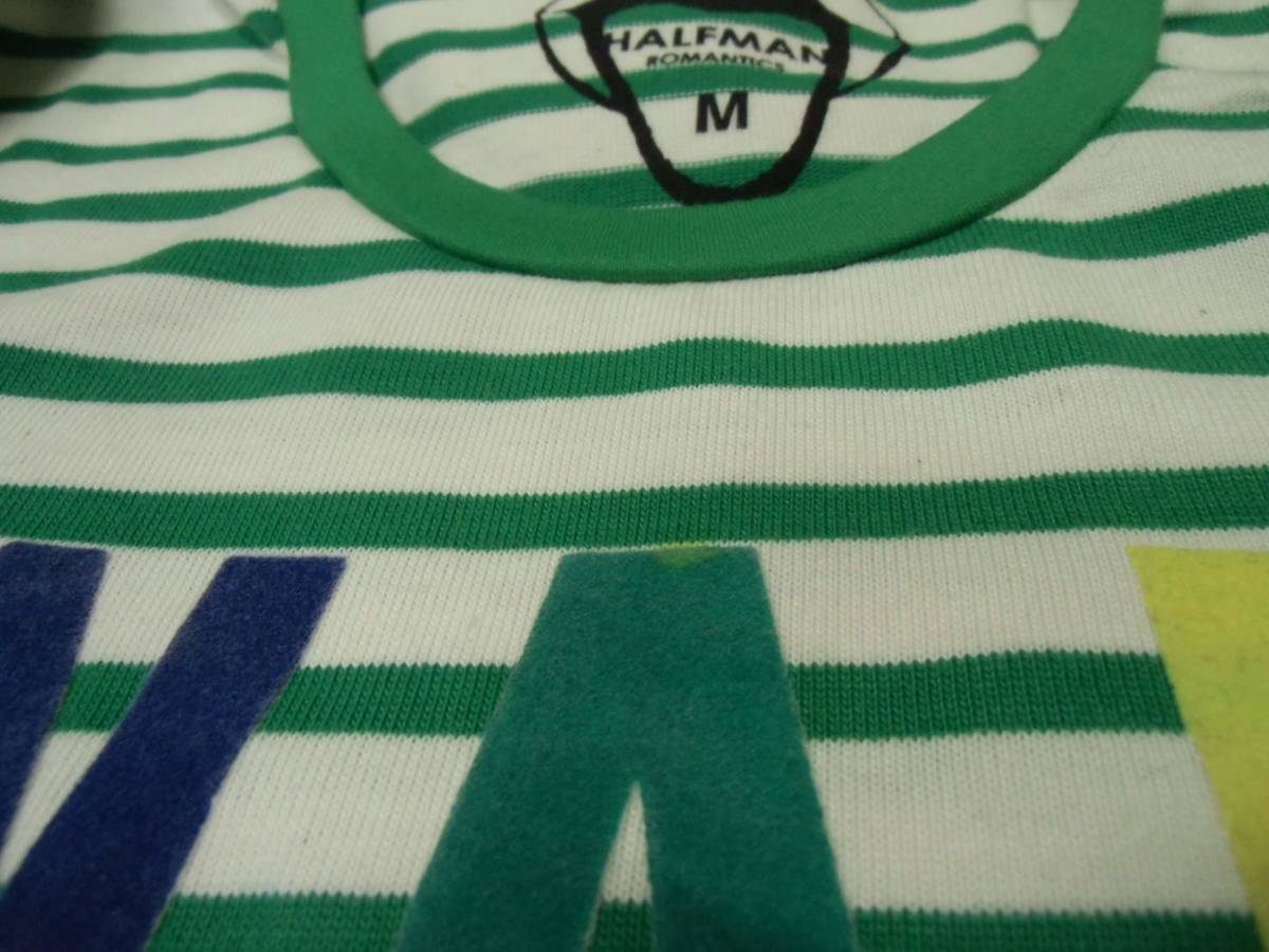 HALFMAN ボーダーワンピースTシャツ フロッキープリント ワンピ