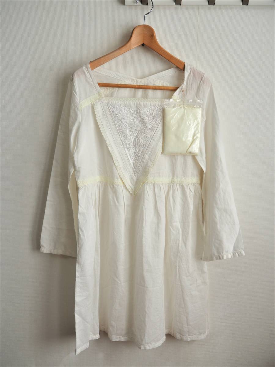 定価8000円弱・胸元はレースと刺繍で可愛いです。ポリエステルのペチコートつきになります。