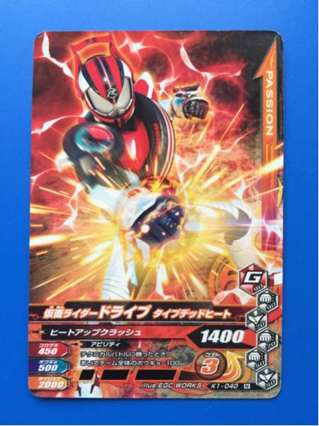 仮面ライダー、ガンバライジングの第K1弾から、No.040《仮面ライダードライブ・タイプデッドヒート》の登場です。発送は、普通郵便を利用します。(特にご希望のない場合)おとりまとめも可能ですが、送料に変動する場合がございます。また、送料のご請求は、自宅での計量を基準にご請求させていただいておりますので、実際の金額と差異が出る場合もございます。予めご了承ください。他にも多数出品中です。まとめてこの機会にいかがでしょうか?ご質問お待ちしております。
