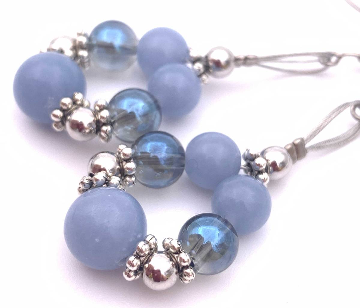 ★天然石アクアオーラブルー&エンジェライトのピアス
