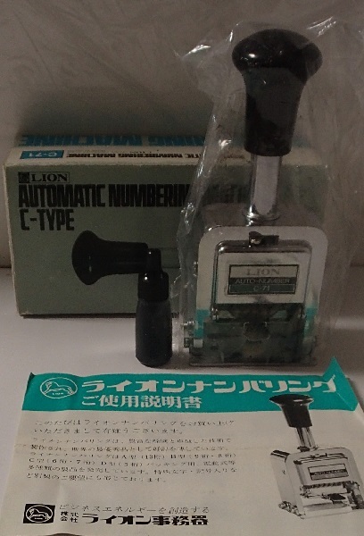 600/文具/スタンプ ナンバリング C型 6桁 7様式 E字体 C-71/説明書/ライオン事務器/全桁自動送り/専用箱/USED