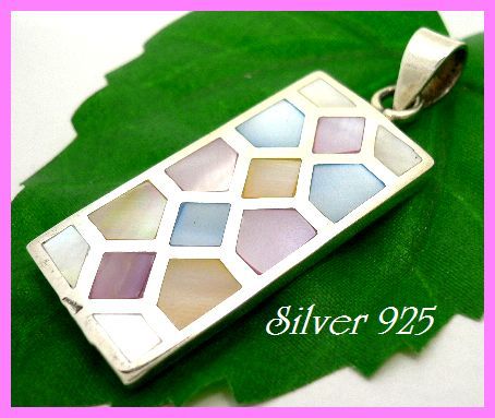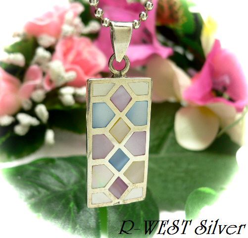 シルバー925銀のシェル貝殻入り インレイ プレート ペンダント/パステル