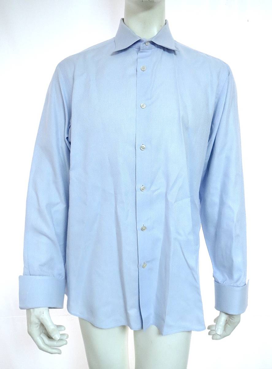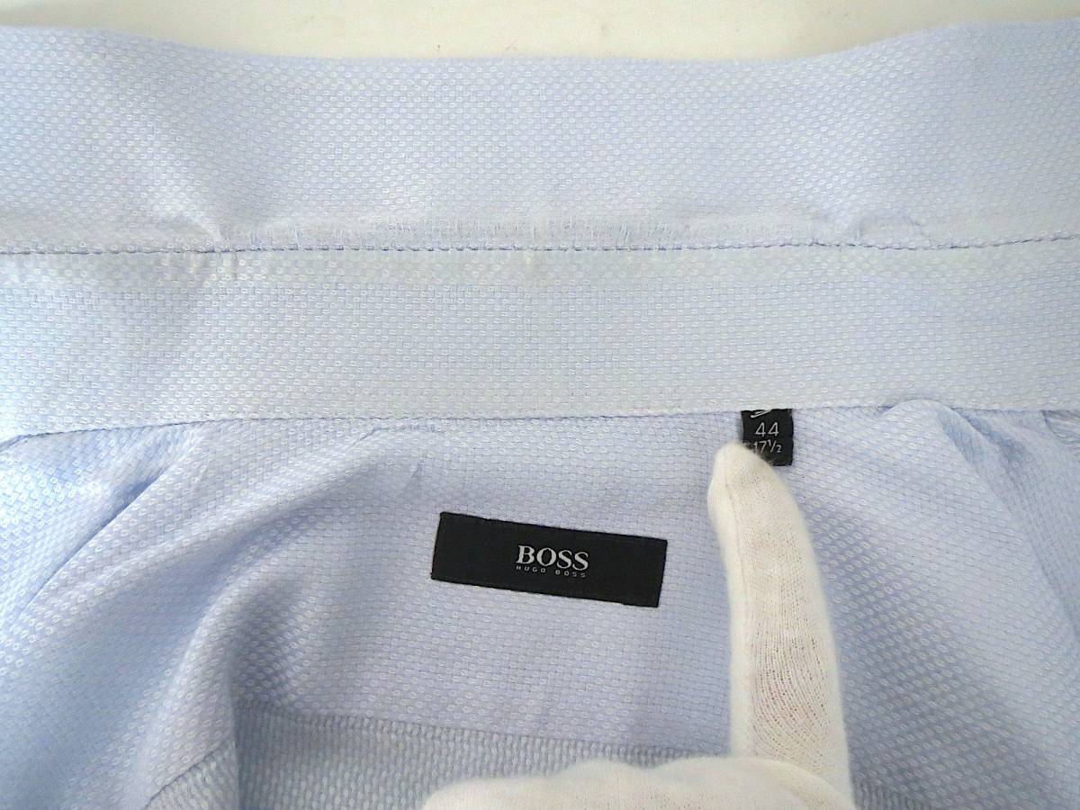 二点落札で送料無料! H9 クリーニング済 HUGO BOSS ヒューゴボス 水色 長袖 シャツ メンズ 44 17 1/2 トップス ブルー B