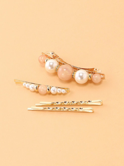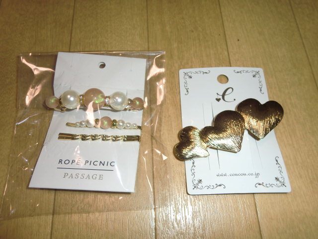 ★再々値下げ★新品ロペピクニックヘアーアクセサリーオーロラカラーパーツ/パールピンSET+3連ハート重ねバレッター2点セット★切手