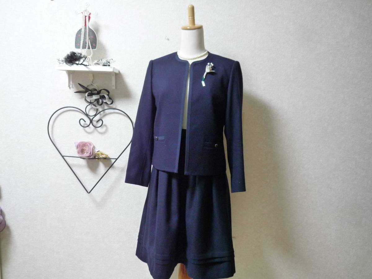 //:組み合わせ:ノーカラー ジャケット 日本製 9AB2 & 切り替えドッキング ワンピース M 卒・入園・普段等
