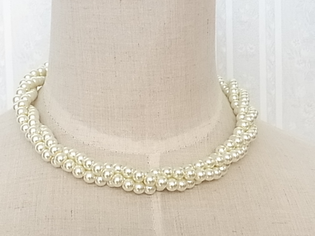 イミテーションパール 3連のツイストデザイン ねじり パーティーや入卒にも素敵なエレガントなネックレス◎◎