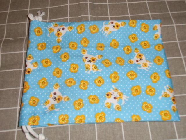 手作りの大判裏付ランチョンマット&巾着袋になります。