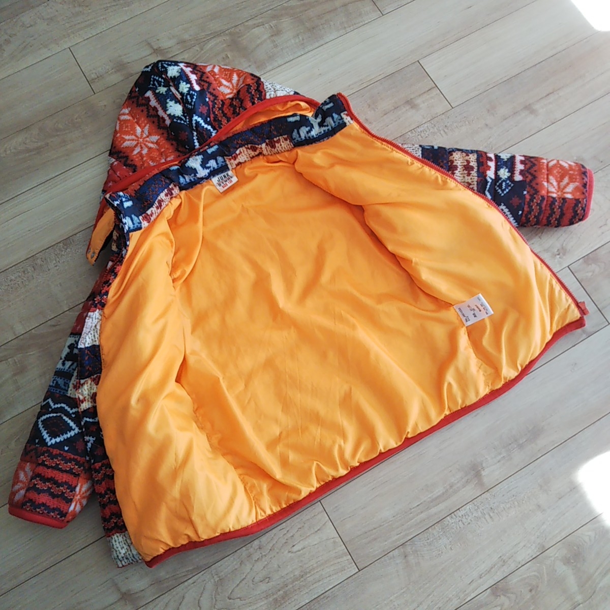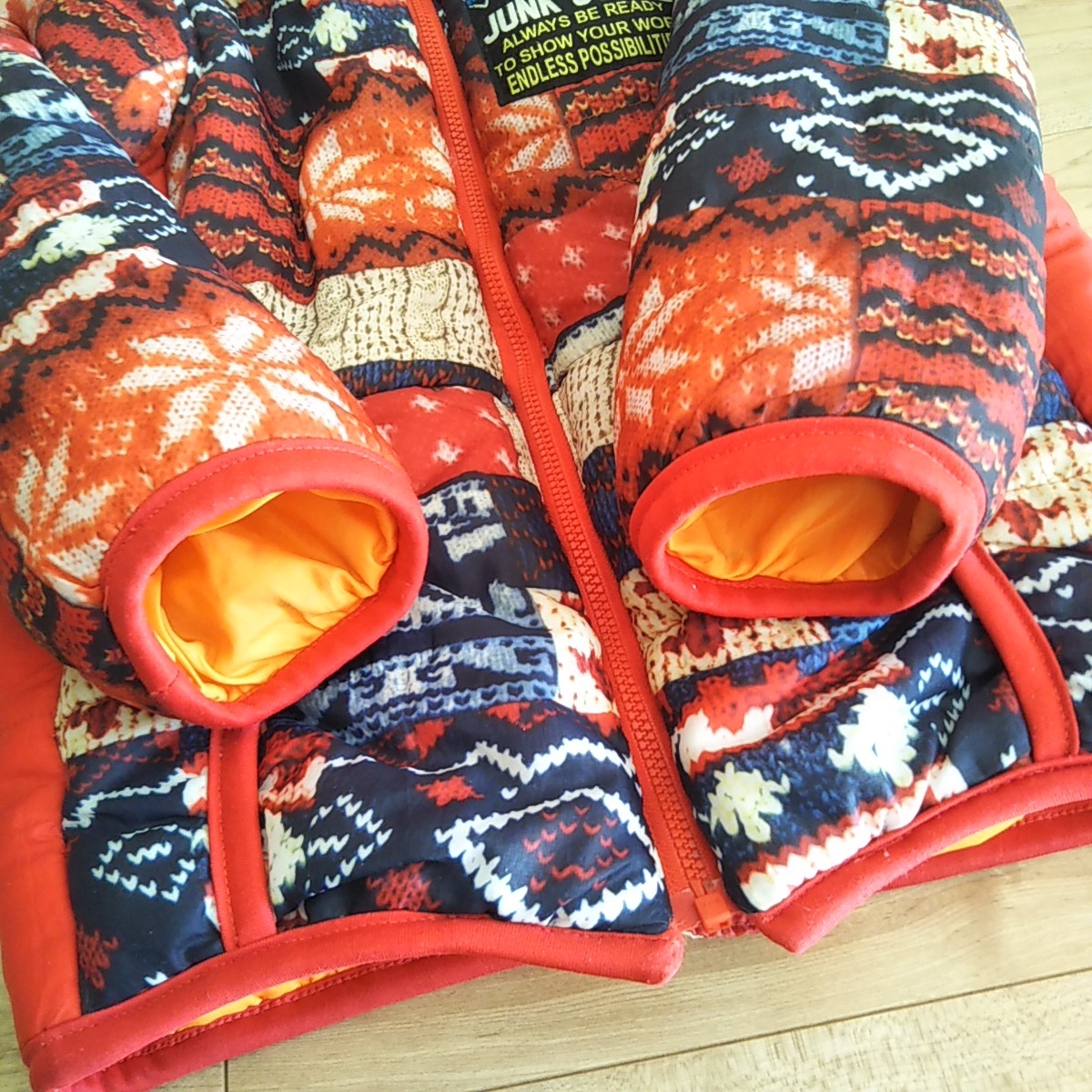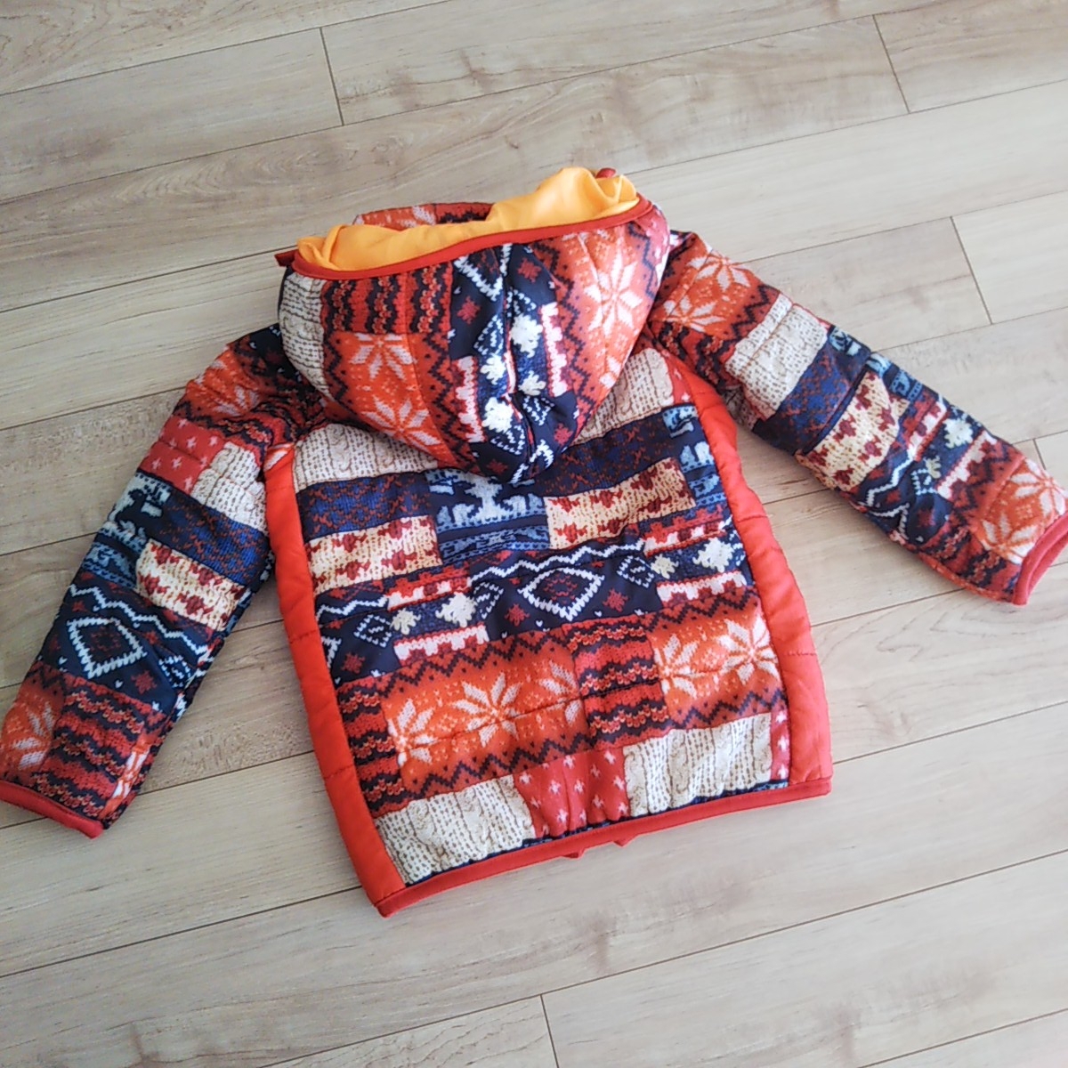 鮮やかなニット柄が、男の子にも女の子にも可愛い中綿ジャンパーです。