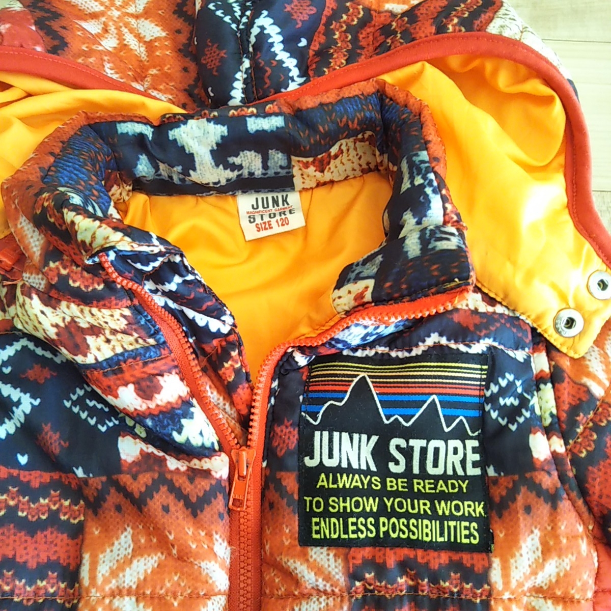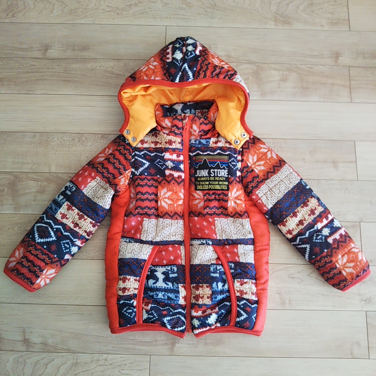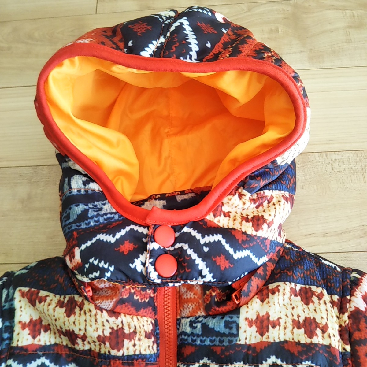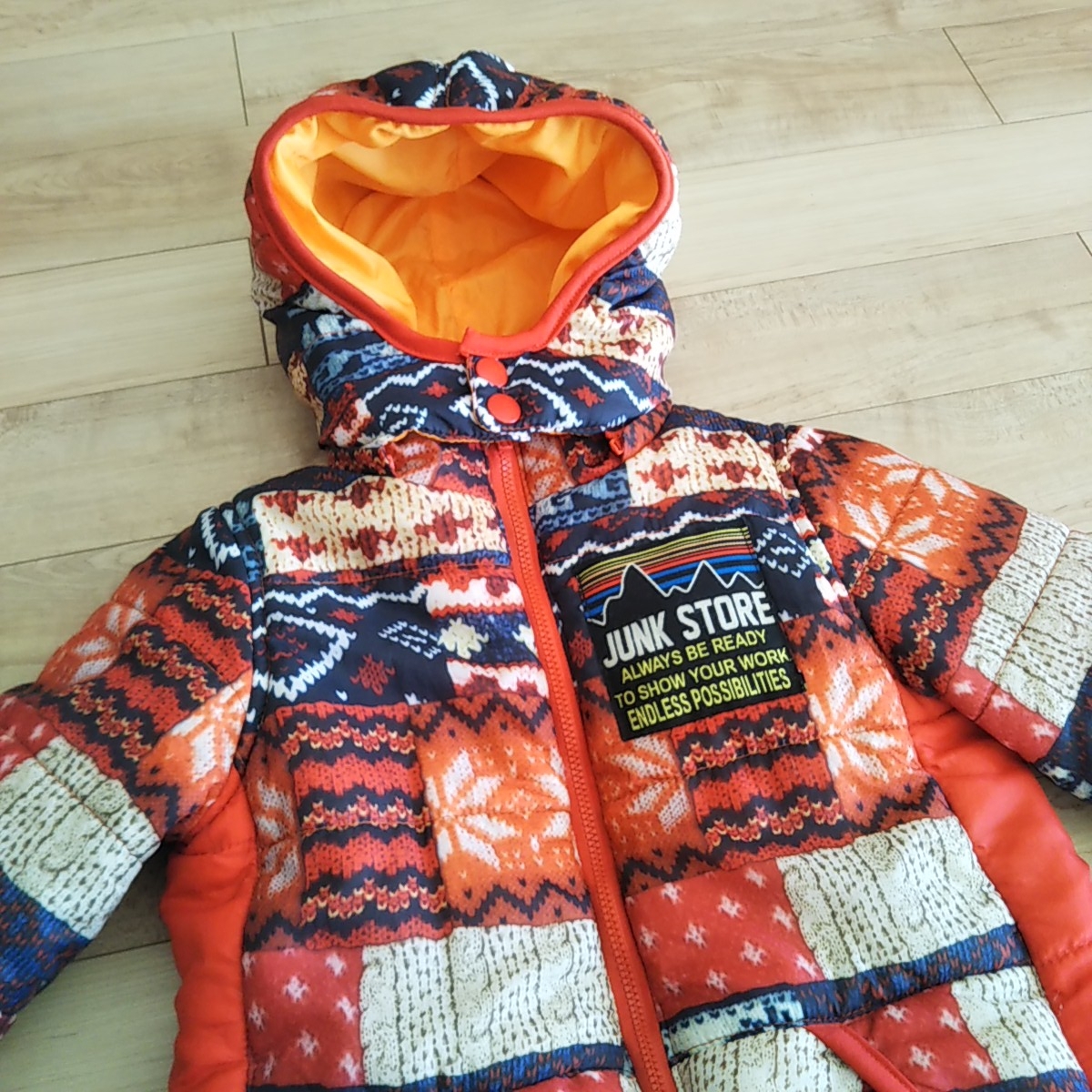 鮮やかなニット柄が、男の子にも女の子にも可愛い中綿ジャンパーです。