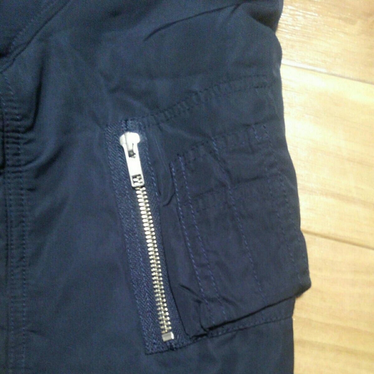 フロントはジッパー、ポケットは左右と左袖にございます。
