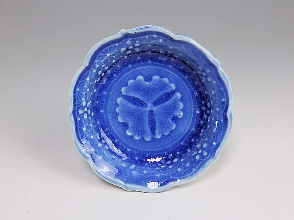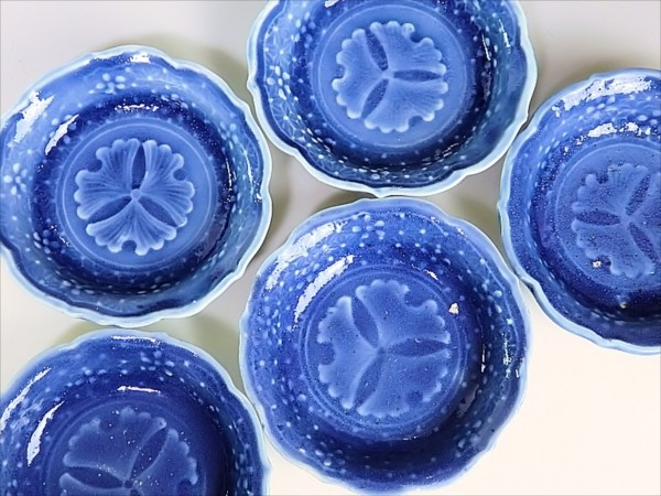 ★華心★ VVv-C187 古伊万里 瑠璃 陽刻 麻の葉紋に銀杏の図 豆小皿 5枚