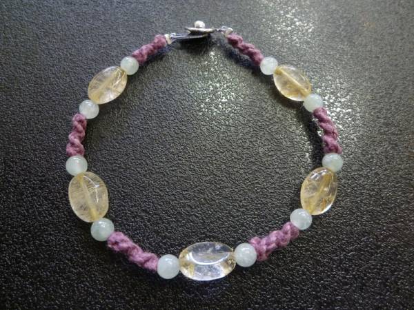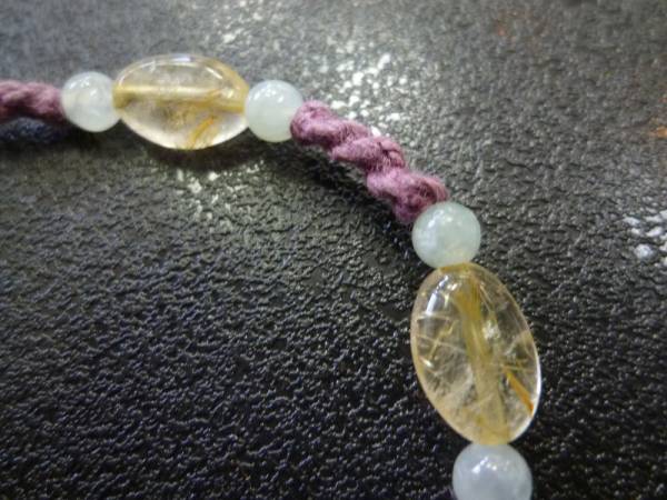 ☆ゴールドルチルクォーツ、プレナイトの 高品質のマクラメ ブレスレット商品です。