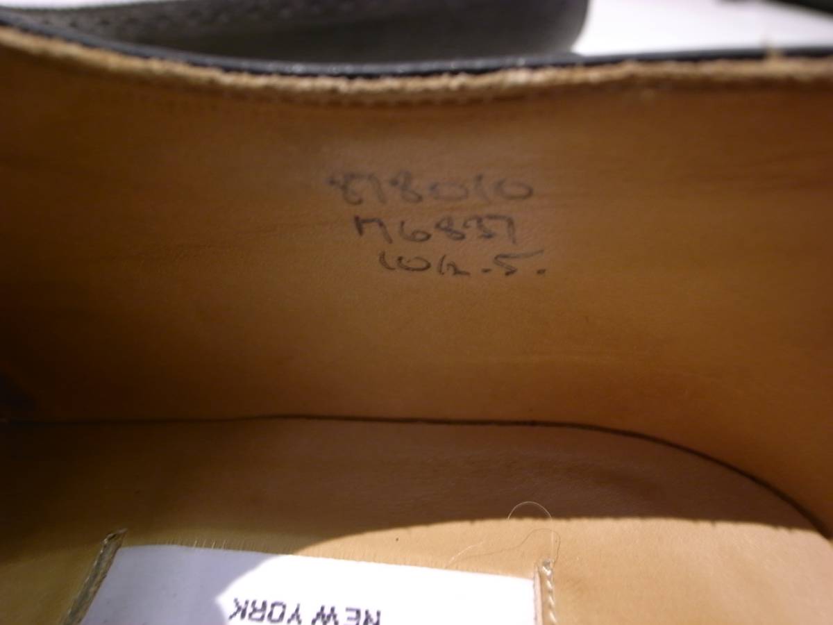 この他にもハイブランド等の商品を多数出品しています。 ●品名 : Thom Browne(トム・ブラウン ) / ウィングチップ・シューズ(買収前の初期物) ●色柄 : 黒x白 ●価格 : 20万円程度 ●産地 : イングランド ●サイズ : 表記なし(28-29cm相当) ※アウトソールは約32cm ●状態 : 8/10 (5回程度の着用) ●素材 : 本革 ●付属 : 正規シューツリー(ロゴ・プレート付) 【補足説明】 ●トム・ブラウン初期(買収される以前)のハンドメイド時代の貴重な革靴です。(個人オーダー品です) ●現行品のようなサイズタグではなく、内側に手書きでサイズ等の記載があります。(写真参照) ●着用回数も少なく、ソールの磨り減りもあまりありません。内側も擦り切れ等なく、キレイです。 ●アッパーの黒色部は型押しレザー、白色部はスムースレザーが使用されています。 ●ソールはレザー仕様。つま先とカカト部には金属プレート(錆あり)が施され、擦り減りにくくなっています。 ●アウトソール裏には「MADE IN ENGLAND」の焼印があります。 ●貴重な正規シューツリー(ブランドロゴプレート付き)が付属します。 【注意事項】(入札前に自己紹介もご一読ください) ●返品・返金には応じ兼ねます。商品状態は写真・説明文・質問でご判断ください。(タバコ無/ペット無) ●発送は、匿名の「日本郵便orヤマト運輸」でとなります。 ●条件によっては、即決(早期終了)や値引き等も受け付けますので、質問欄よりご連絡下さい。