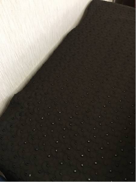 日本製のレース刺繍入りパワーネットニット生地、刺繍幅75cm×1m、お色は濃茶になります。