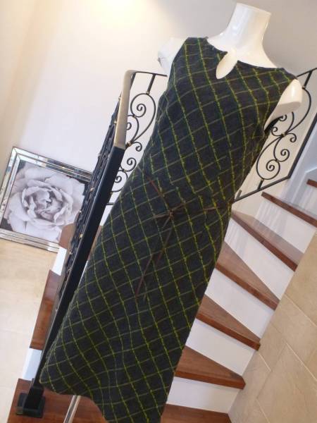 KUMIKYOKU 組曲 グレー×グリーン ウールワンピース 2 M相当