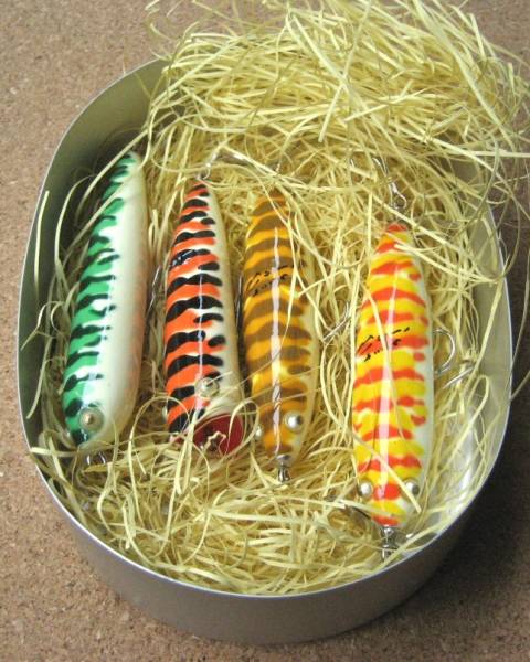 | 商品説明 | スミス ハトリーズ ビンテージセット Aセット (ウッド) (2005年 限定生産品) の 新品・未使用品です。 内容はは以下の通りです。 ・ペンシルベイト (100mm 12.5g) [グリーン系] ・ポッパー (87mm 11.5g) [レッド系] ・シングルスイッシャー(83mm 13.0g) [ブラウン系] ・ダブルスイッシャー (83mm 14.5g) [オレンジ系] カラーは画像でご確認ください。 ハトリーズプラグのイラストとロゴが刻印されているアルミ製の 専用ボックスに入っています。 画像はサンプルです。塗り具合など個体差があります。 また、ボディーにはフックによる傷があります。 パッケージ・ボックスには擦れ・汚れなどの傷みがあります。ご了承ください。 |