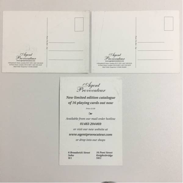 即決☆Agent Provocateur エージェント プロヴォケーター ポストカード レア 3枚セット USED 保管品