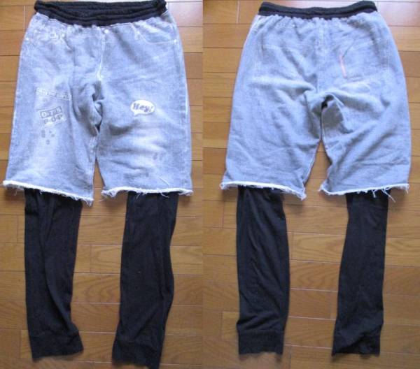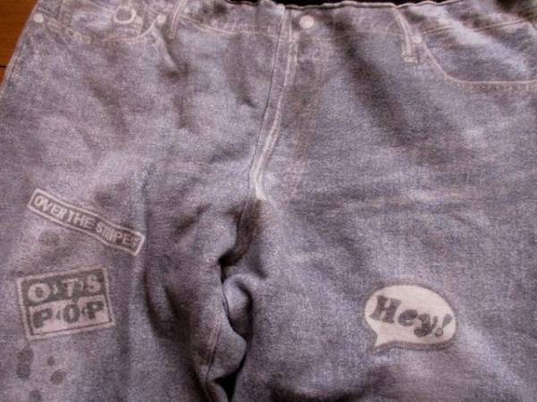 日本製 OVER THE STRIPES オーバーザストライプス デニム 転写 スウェット 重ね着風 パンツ Mサイズ
