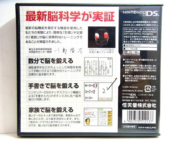 NINTENDO DS ソフト ★★★★即決価格でご落札は送料無料★★★★ 東北大学未来科学技術共同研究センター 川島隆太教授監修 脳を鍛える大人のDSトレーニング 任天堂 NTR-ANDJ-JPN 送料180円~ | |||||||||||||||||||||||||