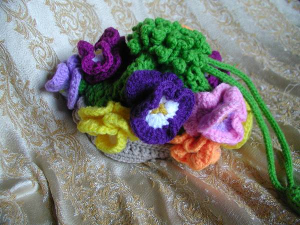 ハンドメイド★ハンドメイド★お花の巾着、きんちゃく★ パンジーかな?