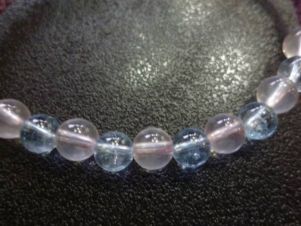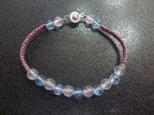ブルートパーズ ローズクォーツ(マダガスカル) 手編みブレスレット
