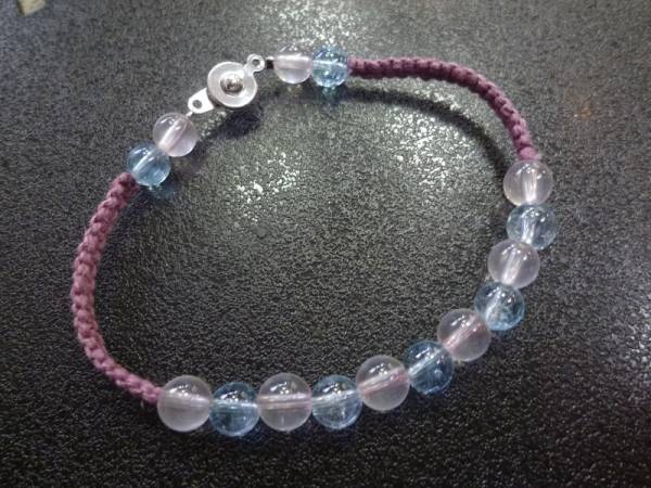 ☆ブルートパーズ、ローズクォーツ(マダガスカル産)の 高品質のマクラメ ブレスレット商品です。