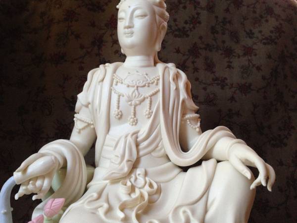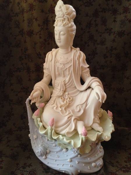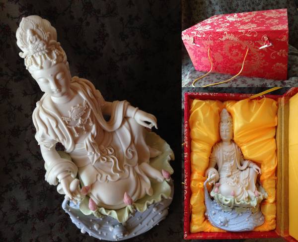 卍仏教美術 И陶器 『観音菩薩 坐像』 細密 仏像 33cm 約2kg G15 | ||||