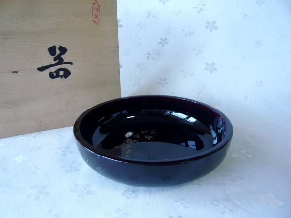 | ★ 商品名 未使用美品★菓子器★漆器 木製 ボウル◆菓子鉢★23cm×6cm★合成漆器 ウレタン塗装★木箱★1258 |