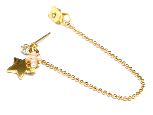 長いチェーンが揺れるスター&クロスのピアスです。 サイズ L約4.5cm スター約0.9cm | |