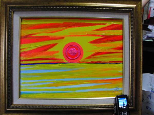 ≪国美協≫TOMOYUKI・友之、『海と太陽』、油彩画、F6号:40,9×31,8cm、油絵一点物、新品高級油彩額付、直筆サイン・真作保証付