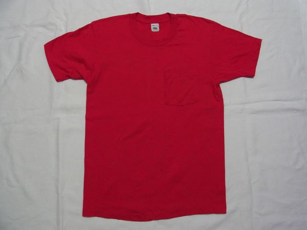 ☆美品☆ 70s80s USA製 ビンテージ FRUIT OF THE LOOM フルーツオブザルーム 無地 ポケット Tシャツ sizeM ピンク ☆古着 Hanes ヘインズ
